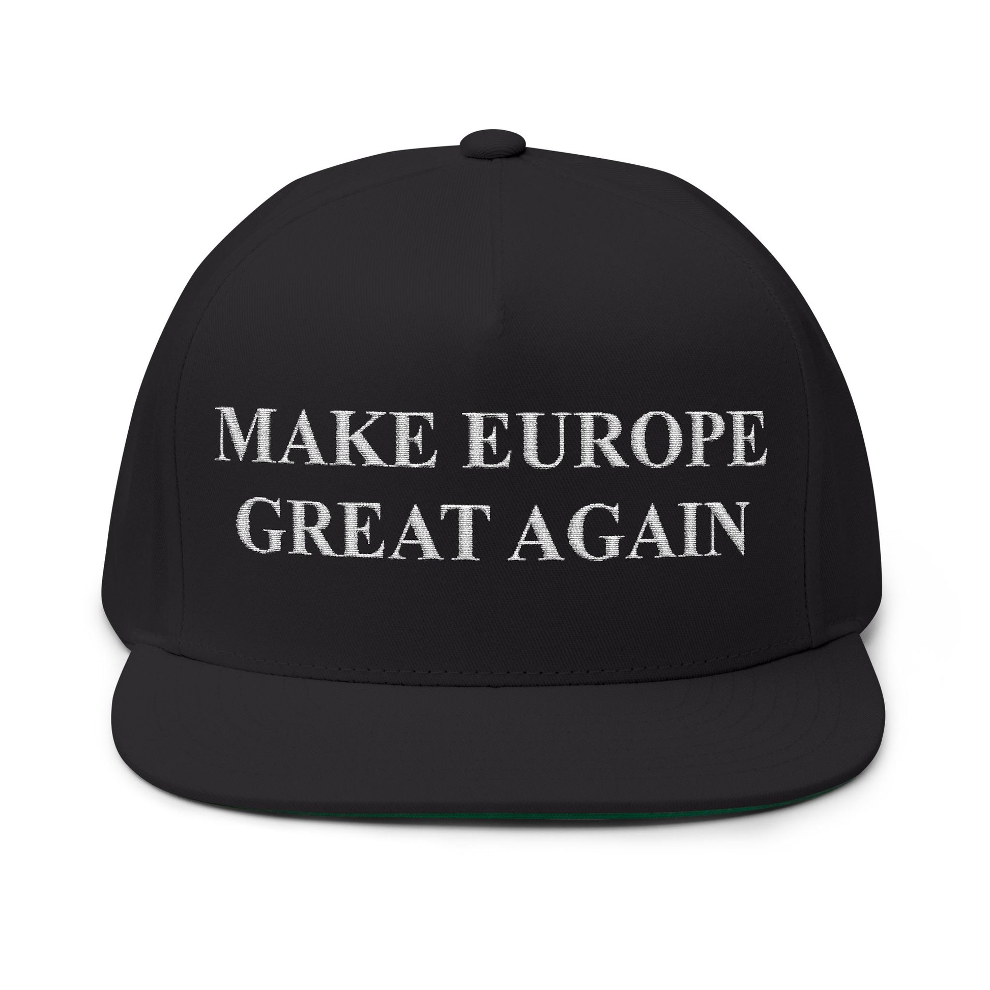 The updated design features a bold EU flag embroidered on the left panel and crisp “MEGA” lettering on the right side, giving the cap a modern, balanced aesthetic. A classic green under-visor adds a traditional touch, while breathable eyelets and an adjustable snapback ensure a secure, comfortable fit for everyday wear — from events and rallies to your daily routine.